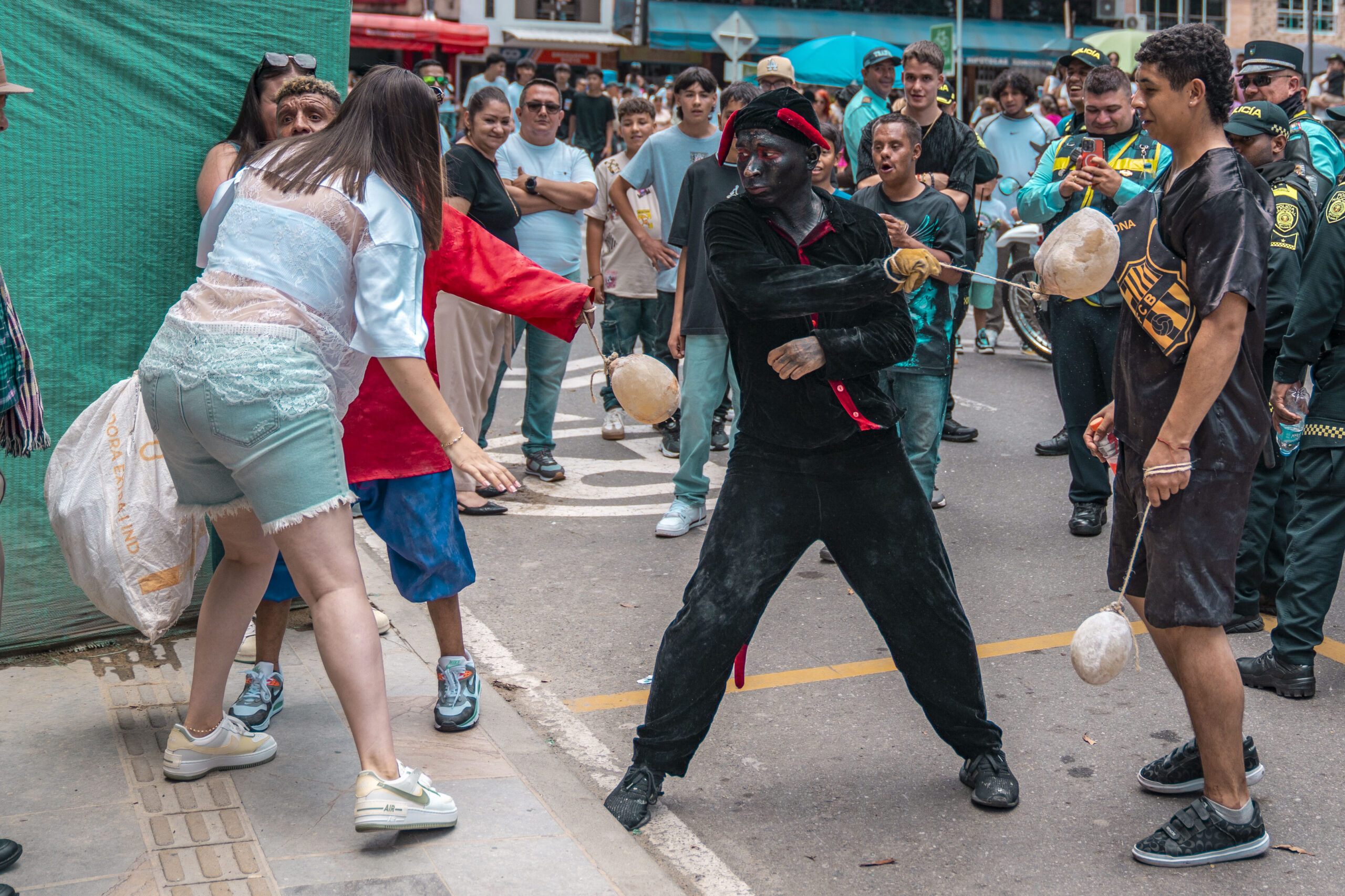 Las calles se llenan de movimiento, de gritos, de risas. Hay quienes corren, quienes se esconden y quienes, entre juego y picardía, lo acercan a otros para que reciban el famoso “vejigazo”.
